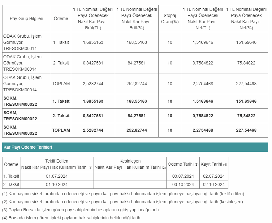 SOKM hissedarlarına son dakika duyurusu geldi. gelen son dakika açıklamasında Şok Market'in hissedarlarına temettü ödemesi yapacağı öğrenildi. 2 taksit şeklinde yapılacak temettü ödemesi için detaylar belli oldu ve temettünün hesaplara yatacağı tarihler ve temettü miktarının ne kadar olduğu da belli oldu. Peki temettü ödemesi ne kadar? Temettü ne zaman hesaplara yatırılacak?