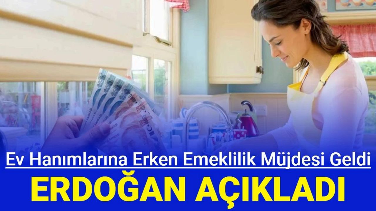 Cumhurbaşkanı Erdoğan yaptığı son dakika açıklamasında ev hanımlarına emeklilik müjdesi verdi. ERdoğan, ev hanımlarına emeklilikte prim desteği veirlmesi konusunun gündeme geldiğini kısa sürede çözüleceği müjdesini verdi.