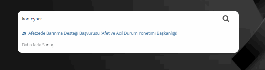 E Devlet kapısı üzerinden yukarıdaki gibi arama kısmına Konteyner yazın. Burada arama kısmında , yukarıda görüldüğü gibi Afetzede Barınma Desteği Başvurusu ekranı çıkacak. Buna tıklayarak konteyner evler için başvuru yapabileceksiniz.