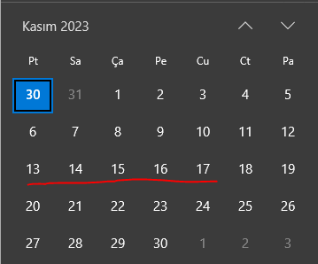 Kasım ayında 2023 2024 eğitim öğretim yılı 1. ara tatili olacak. Söz konusu ara tatil 13 Kasım 2023 tarihinde başlayacak. İşte ara tatilin takvimin üzerinde gösterimi: