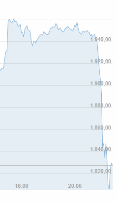 Ethereum fiyatında da Bitcoin ile paralel şekilde bir düşüş görüldü. Gelen son dakika bilgilerine göre gün içinde 1960 dolar seviyesine kadar çıkan Ethereum, az önce hızlı şekilde gerileyerek 1805 dolara kadar düştü. İşte Ethereum fiyatında yaşanan düşüşün grafiği:
