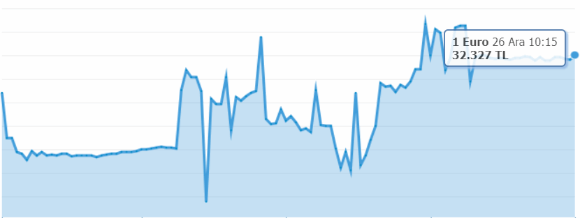 Gelen son dakika bilgilerine göre Euro kuru dün gece saatlerinde 32.38 TL seviyesine hızla yükselerek rekor kırdı. Euro kuru yazım sırasında ise 32 lira 32 kuruş seviyesinde seyrediyor. İşte euro kurunda yaşanan hareketlilik: