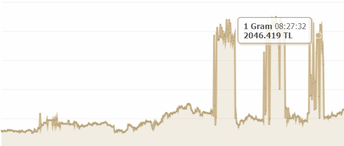 Dolar kurunda yaşanan yükseliş ile birlikte gram altın 2031 lirayı geride bıraktı ve 1 gram altın 2046 TL'ye kadar çıktı. İşte gram altında yaşanan yükselişin grafiği: