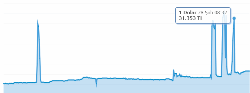 Gelen son dakika bilgilerine göre dolar kuru yaşanan yükseliş ile birlikte en yüksek seviyeye yükseldi. 1 dolar şu sıralar 31 lira 35 kuruş seviyesine kadar yükseldi. Dolar yazım sırasında 31 lira 17 kuruş seviyesinde seyrediyor. İşte dolar kurunda yaşanan yükselişin grafiği: