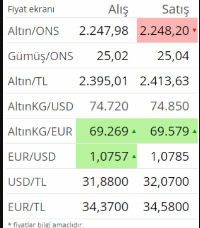 Bunun yanı sıra altın fiyatlarında da gerileme başladı. 2450 liraya kadar çıkan altının fiyatı 2400 liraya kadar gerilemiş durumda. Euro kuru ise 35 lira seviyelerinden 34.50 TL seviyelerine kadar geriledi.
