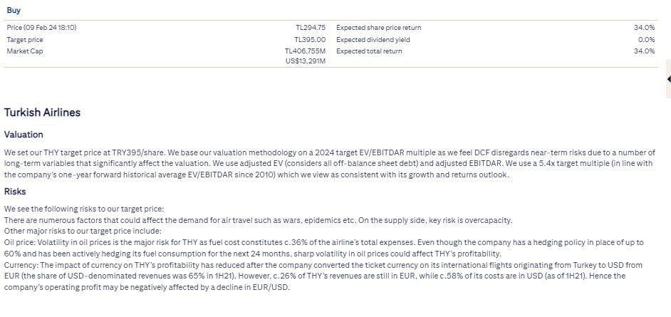 Yayınlanan tahmine baktığımızda THY'nin 395 TL olmasının beklendiği bildirildi.