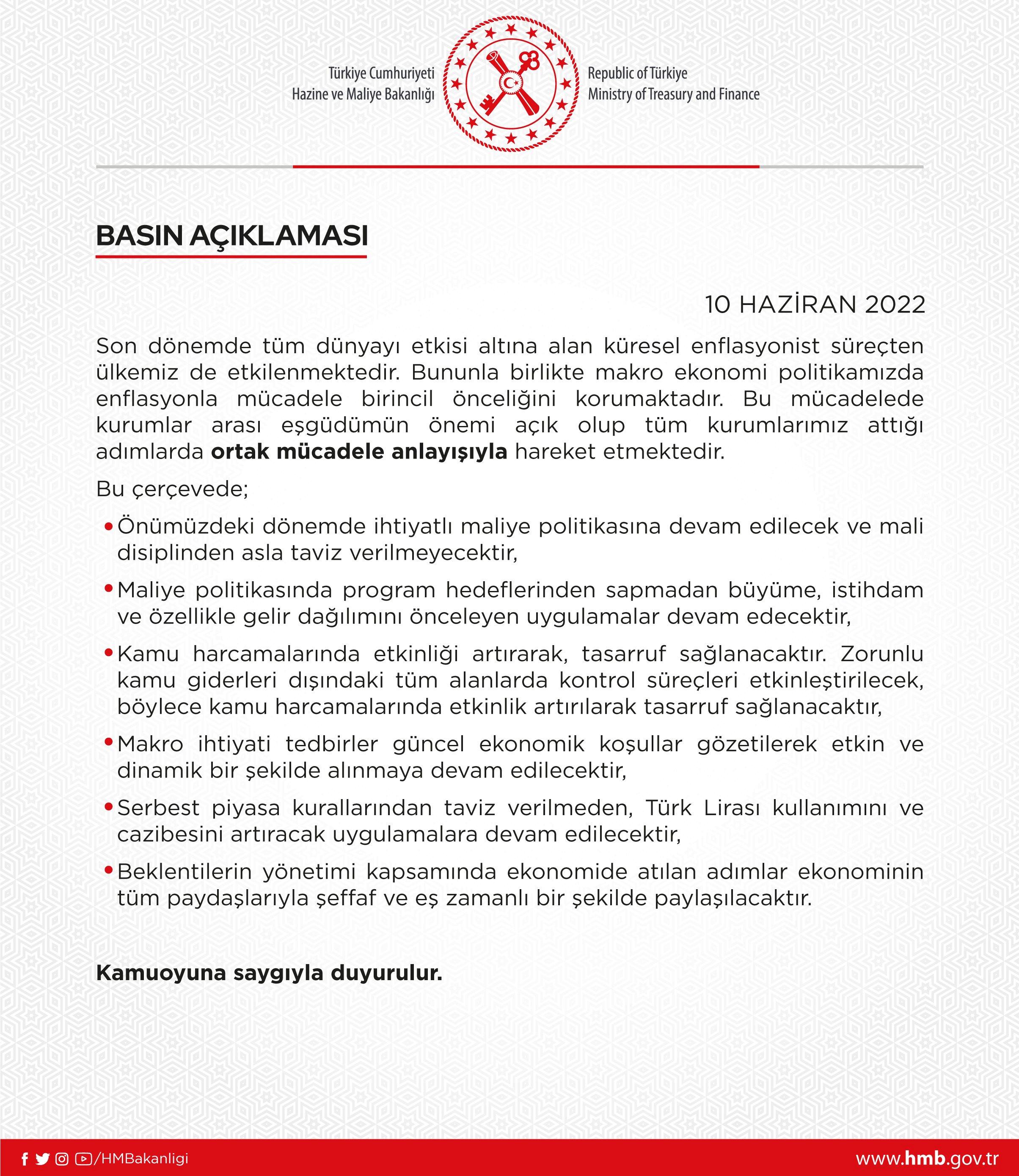 Hazine ve Maliye Bakanlığı tarafından az önce bir açıklama yapıldı. Açıklama şu şekilde: