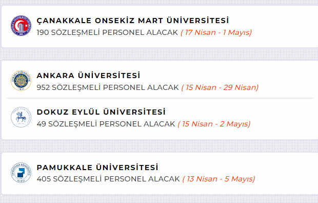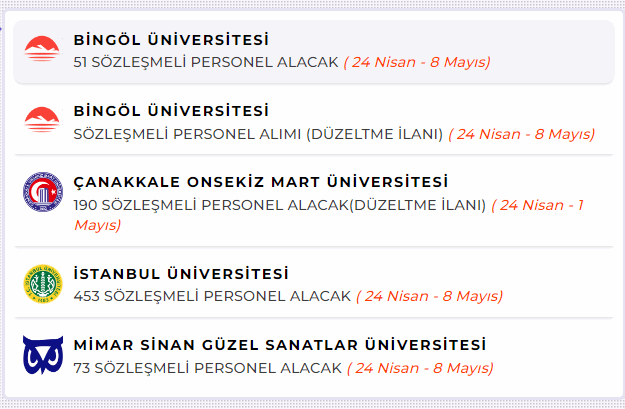 Mevcut ilanlara baktığımızda üniversite hastanelerine 2594 persoel ve işçi alımı yapılıyor. Güncel ilanlar şu şekilde: