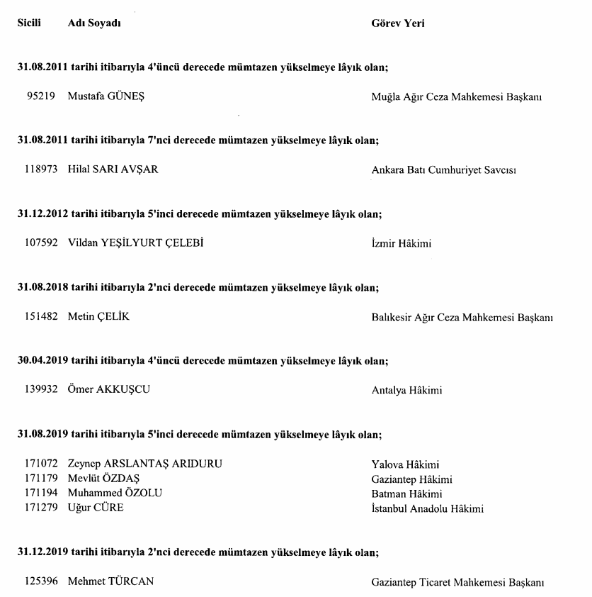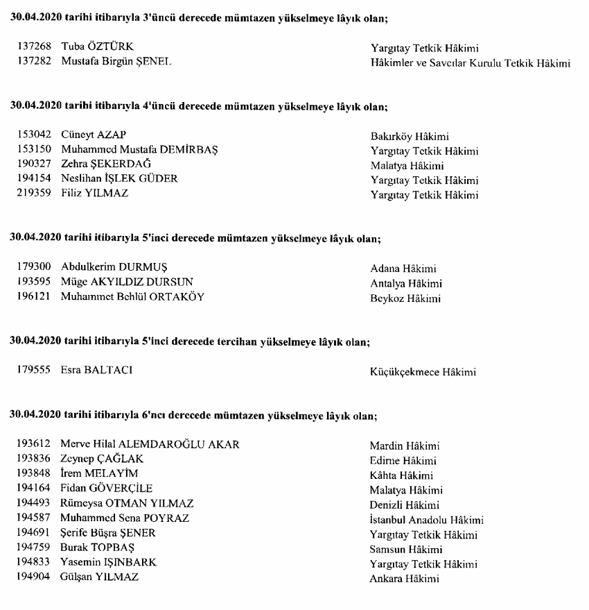 Hakimler ve Savcılar Kurulu Başkanlığından: