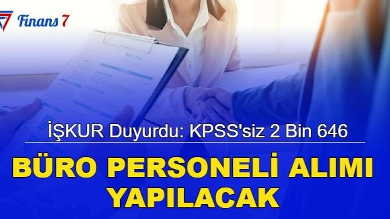 İŞKUR üzerinden son dakika duyurusu: 2 bin 646 büro personeli alımı yapılacak.