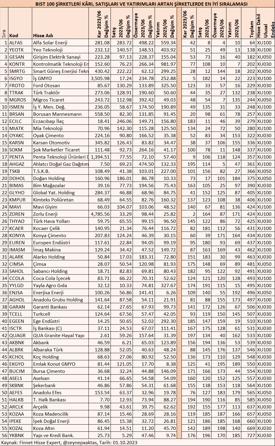 Son dakika haberi geldi: Gelen haberde borsada işlem görmekte olan şirketlerden satışları, karı ve yatırımları en iyi olan 56 şirket belli oldu. Listeye baktığımızda büyük şirketlerin kar yatırım ve satışlarını artırdığına yer verildi.