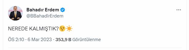 İYİ Parti Genel Başkan Yardımcısı Bahadır Erdem yaptığı son dakika açıklamasında "NEREDE KALMIŞTIK" dedi. Bu açıklama İYİ Parti'nin masaya geri döndüğü şeklinde yorumlandı.