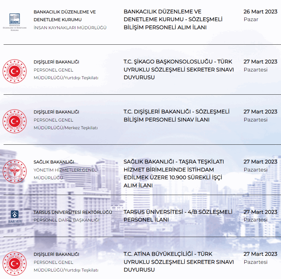 Bu ilanların detayları için : "https://www.iskur.gov.tr/baglantilar/kurum-disi-kamu-isci-alimi-ilani/"