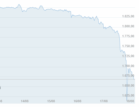 En büyük ikinci kripto para olan Ethereum fiyatında da BTC ile paralel olarak sert gerileme yaşandı. Gece saatlerinde başlayan ve hızlı şekilde süren düşüş ile birlikte 1 ETH fiyatı, kısa sürede 1841 dolar seviyesinden 1680 dolara kadar geriledi. İşte Ethereum fiyatında yaşanan gerilemenin grafiği: