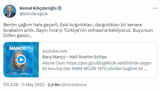 Twitter hesabından açıklama yapan Millet İttifakı Cumhurbaşkanı adayı ve CHP Genel Başkanı Kemal Kılıçdaroğlu, "Benim çağrım hala geçerli." diyerek şu ifadelere yer verdi: