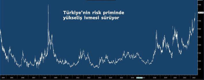 "Türkiye'nin risk priminde yükseliş ivmesi devam ediyor." ifadeleri ile yapılan açıklamada Türkiye'nin 5 yıllık risk primi 800'ün üzeirne kadar çıktığına yer verildi. 2008 yılında küresel çapta yaşanan ekonomik kriz döneminde 904 seviyesine kadar çıkan söz konusu rakam, o tarihten bu yana en yüksek seviyesini bugün gördü.