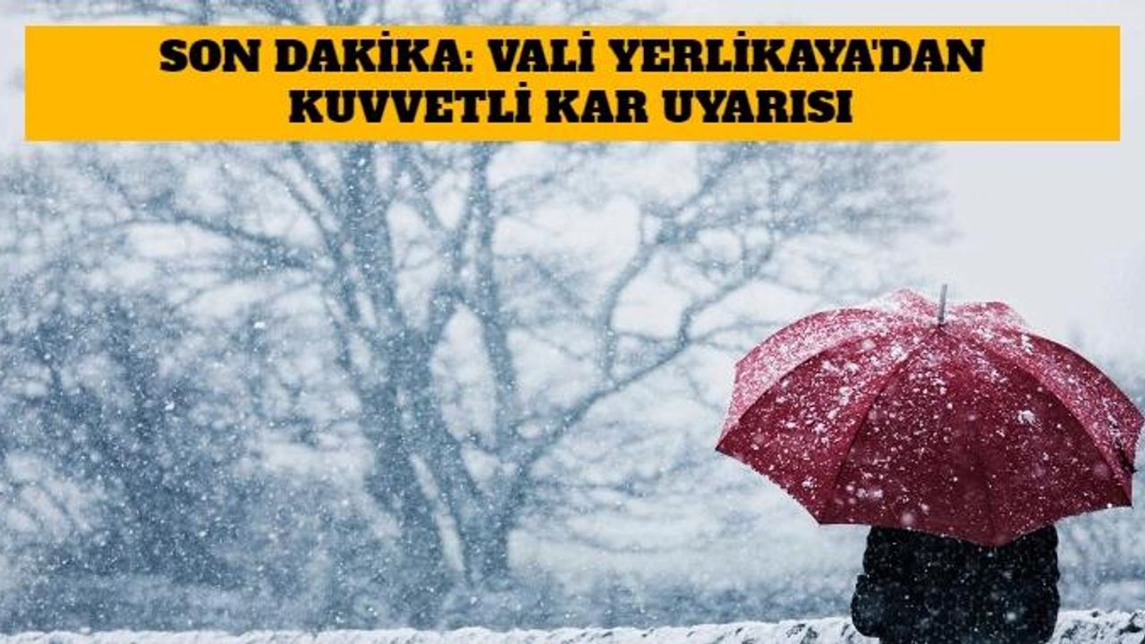 İstanbul Valisi Ali Yerlikaya, sosyal medya hesabından İstanbul'da vatandaşları kuvvetli kar yağışı dolayısıyla, tedbirli olunması gerektiğini belirleterek uyarılarda bulundu.