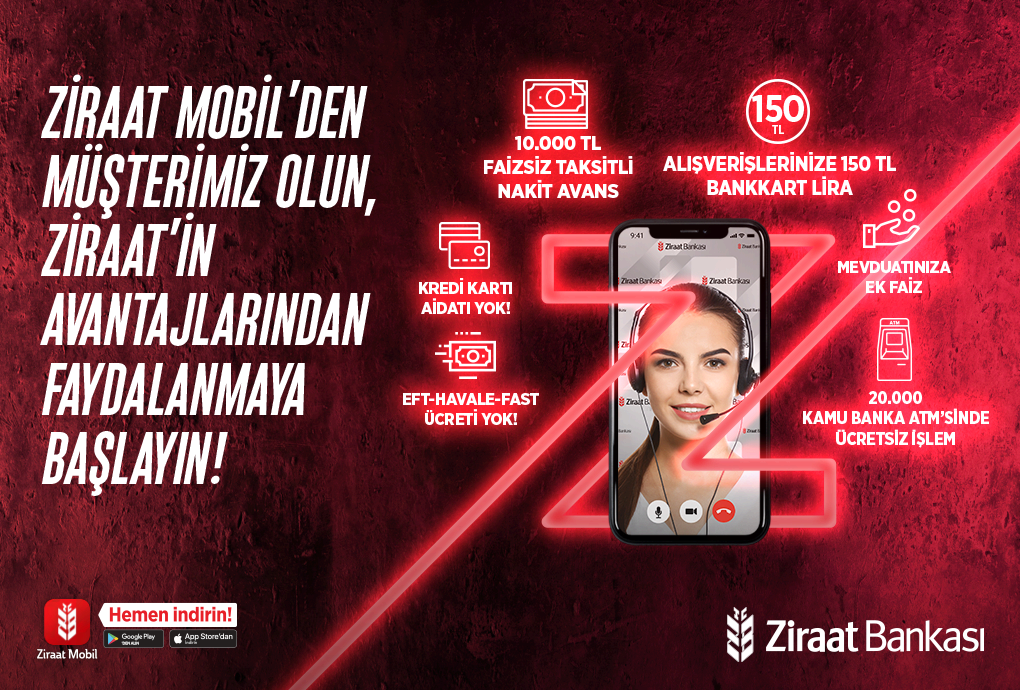 Nakit Avans işlemi Bankkart Mobil, Ziraat Mobil, Bankamız İnternet Şubesi ile ATM'lerimizden gerçekleştirilebilecektir.