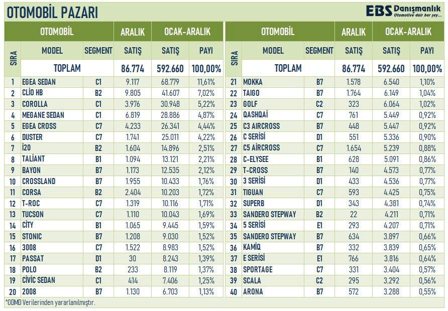 2022 yılında en çok satan araçlar açıklandı. İşte açıklanan liste ve en çok satan arabalar: