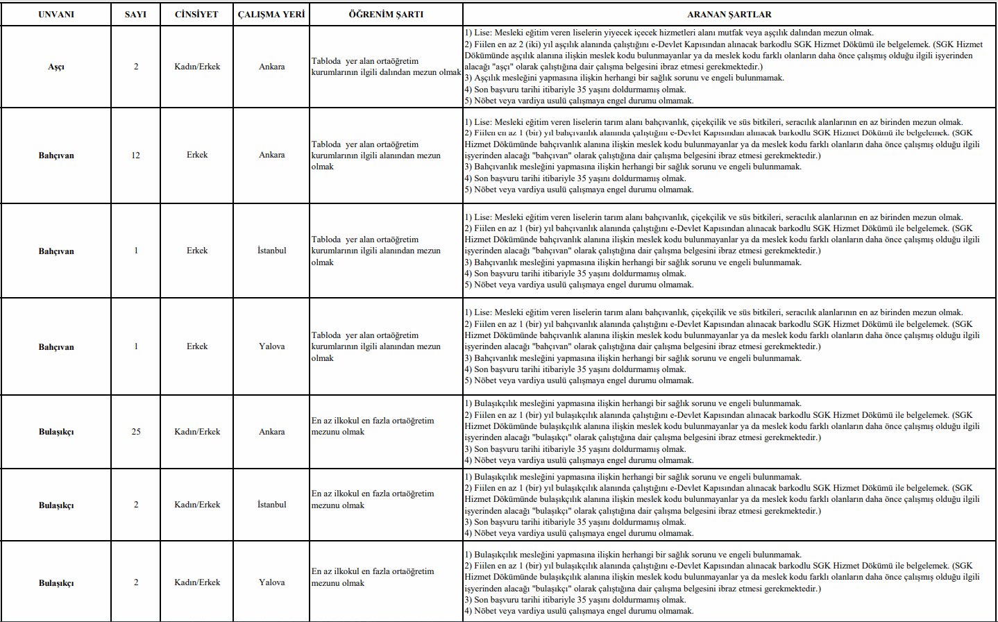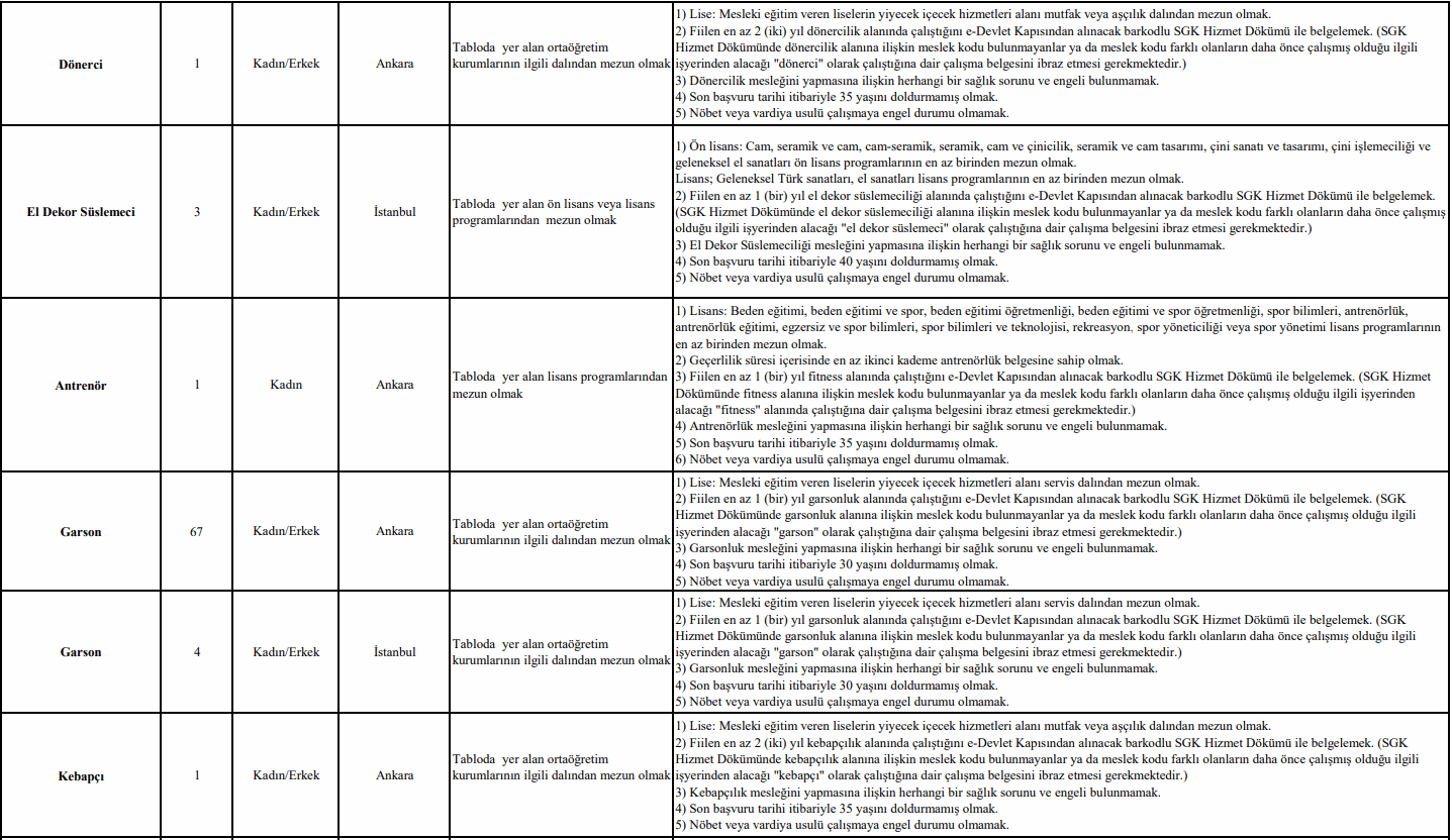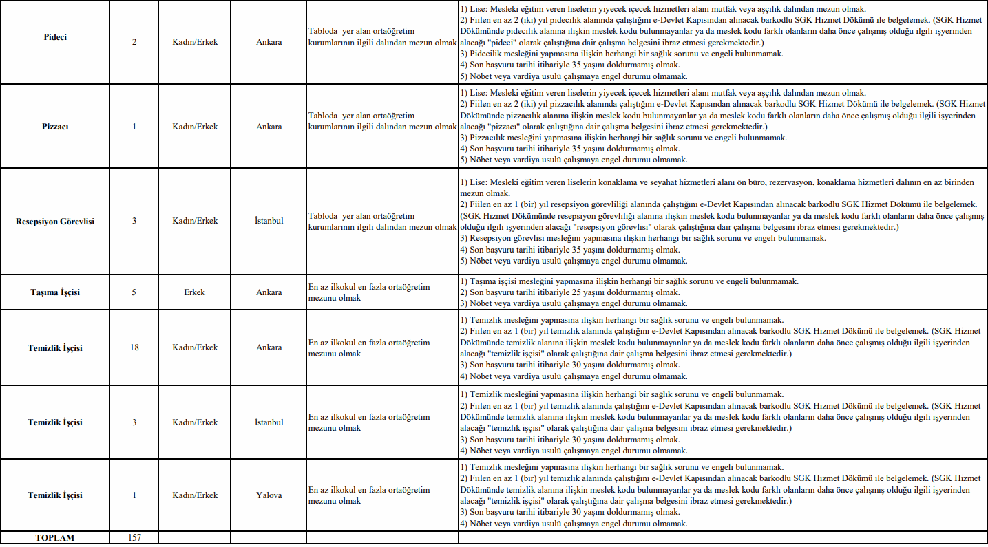 - Bu ilanın ekinde yer alan TBMM Sürekli İşçi Alımı Adaylarda Aranan Nitelikler Tablosundaki ünvanlara ilişkin başvuru özel şartlarını taşımak,