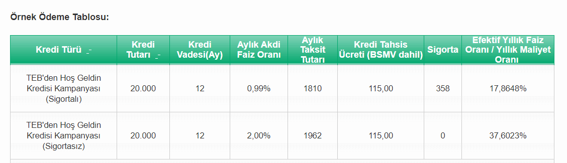 TEB müşterisi olanların 12 aya varan vade seçenekleri ile yüzde 0,99 faiz oranlarıyla ihtiyaç kredisi kullanması mümkündür. 20 bin TL'ye kadar kullanılacak kredi kapsamında uygun geri ödeme seçenekleri sunulacak. Krediden yararlanmak isteyenlerin belirlenen kampanya şartlarını karşılamaları gerekiyor.