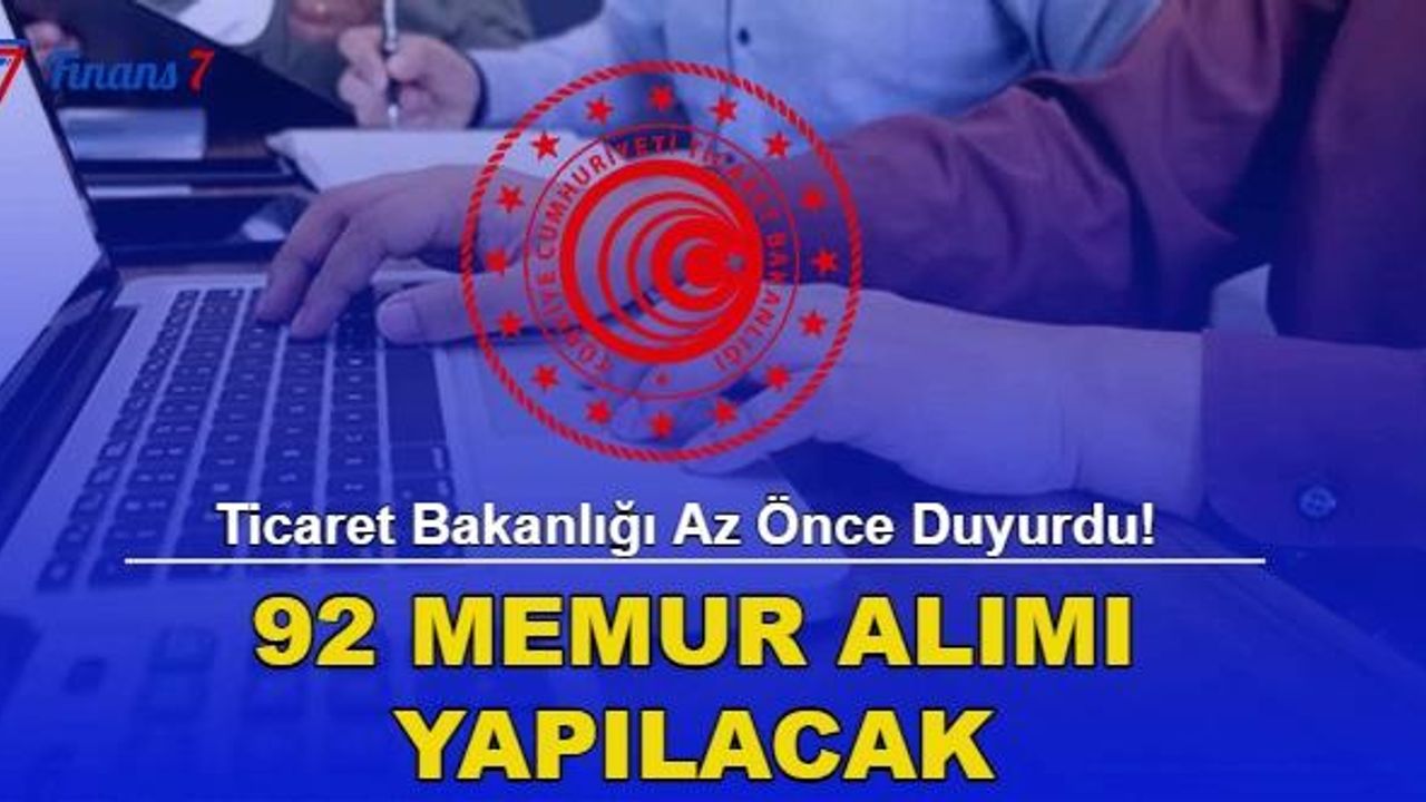Ticaret Bakanlığı bünyesindeki eksikliği karşılamak farklı kadrolarda 92 memur alımı yapacağını duyurdu. İşte kontenjan dağılımı ve başvuru şartları...