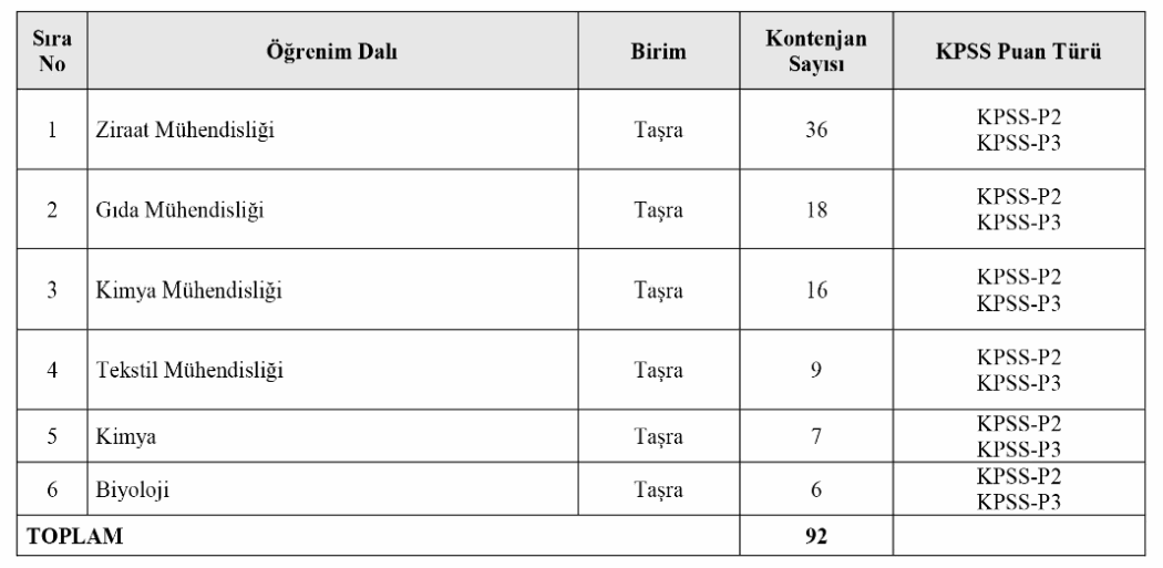 TİCARET BAKANLIĞI 92 MEMUR ALIMI KONTENJAN DAĞILIMI