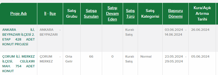 Konutta ilk duyuru geldi ve Çorum ile Ankara'da ucuza konut satışı yapılacağı bildirildi. Çorum ve Ankara'da ucuza konut satışı yapılacağı bildirildi. Çorum için 23 Mayıs'ta, Ankara için ise 3 Haziran tarihinde başvurular başlayacak. Sırada diğer iller var.