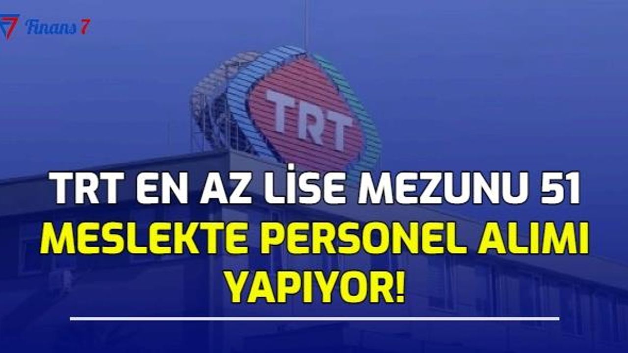 TRT yeni personel alım ilanı yayımlandı. En az lise mezunu 51 farklı meslekte personel alımı yapılacak. İşte detaylar...