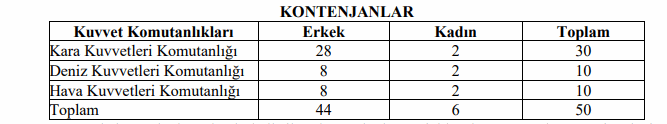 -28 Erkek, 2 Kadın toplamda 30 Kara Kuvvetleri Komutanlığı.