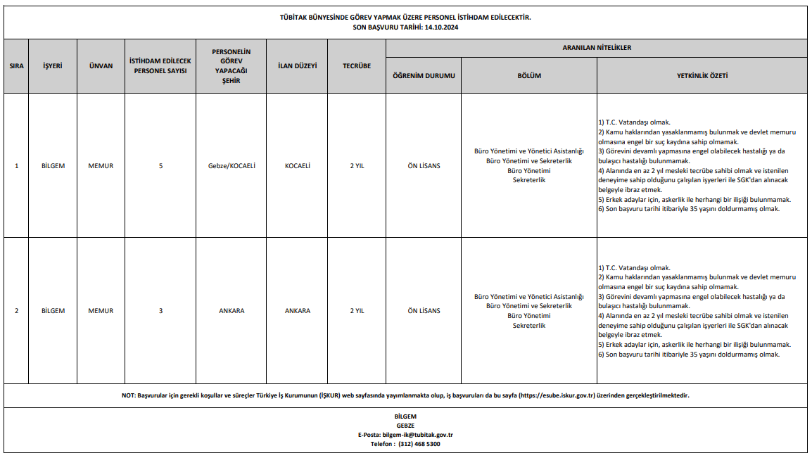 Başvurular, bugün itibariyle başladı. Son başvuru tarihi ise 14 Ekim olarak açıklandı. İlana başvurular, İŞKUR üzerinden alınacak.
