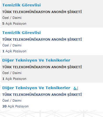 Diğer ilanlara başvurular ise kariyer sayfası üzerinden özgeçmiş oluşturlacak yapılacak. Türk Telekom'un bu personel alımlarının başvurusuna dair bilgiler için "https://www.kariyer.net/is-ilanlari?fpi=188705&hc=T" adresini ziyaret edebilirsiniz.