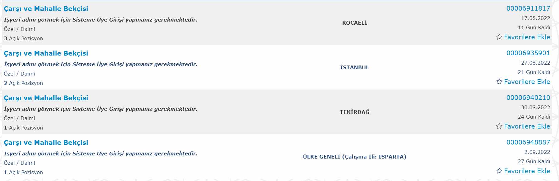 İŞKUR bekçi alımının şu an için sadece özel sektör için geçerli olacağı belirtilerek alımların farklı illerde geçerli olacağı duyuruldu. Türkiye'nin çeşitli illeri için bekçi alım ilanları peş peşe duyurulurken, vatandaşlar başvuru şartlarını araştırmaya başladı. Bunun yanı sıra Asgari Ücret 5.500 TL oldu ve ilanlara başvuru yapıp işe alınanlara 6 bin lira verileceği aktarıldı.