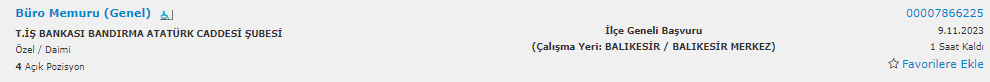 İlana başvurular esube.iskur.gov.tr adresi üzerinden alınıyor. Adaylar İŞKUR e sube sayfasına gittikten sonra giriş yapmalı. Giriş yaptıktan sonra İŞ İLANLARI kısmına tıklayarak ilan arama sayfasına gidebilirsiniz. Son olarak İLAN NO kısmına yukarıda ilanlar kısmından yazan ilan numarasını yazarak ARA butonuna tıklayın. İlanlar aşağıda sıralanacaktır. Kadın erkek diğer adaylarla bilgi alış verişi için TIKLA TAKİP ET
