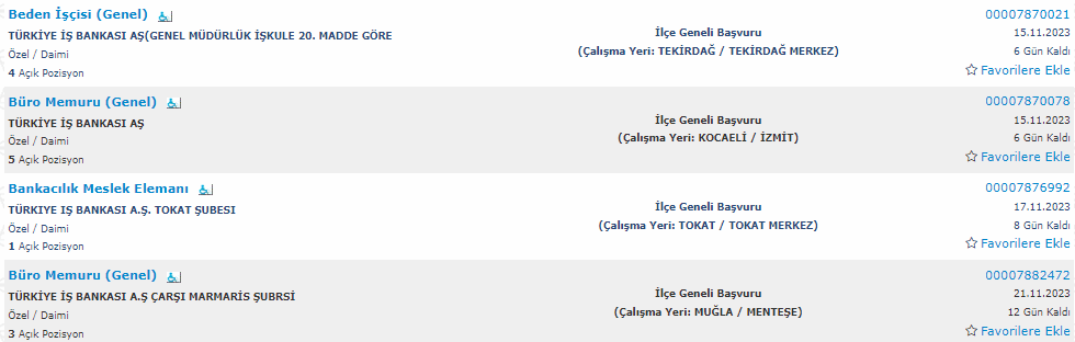 Türkiye İş Bankası'ndan 6 farklı şehre personel alımı.