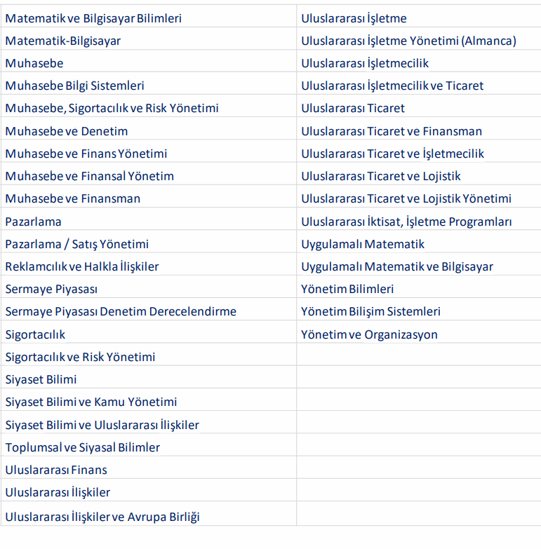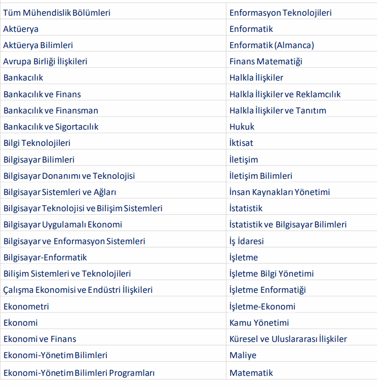 Üniversitelerin 4 yıllık eğitim veren ve detayları tabloda yer alan bölümlerden bölümlerden en geç 15.05.2023 itibarıyla mezun olmak. İşte tablo: