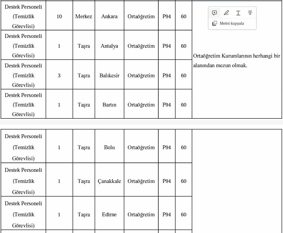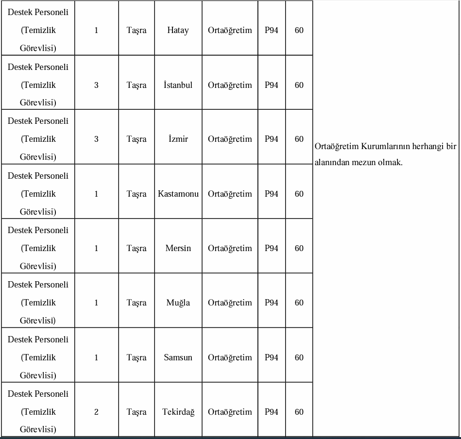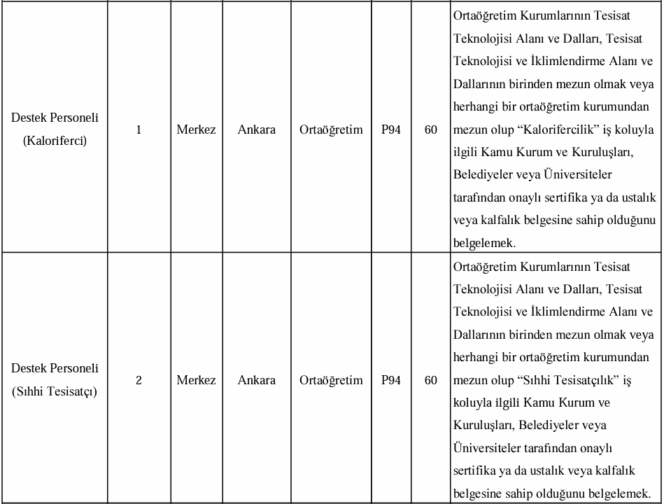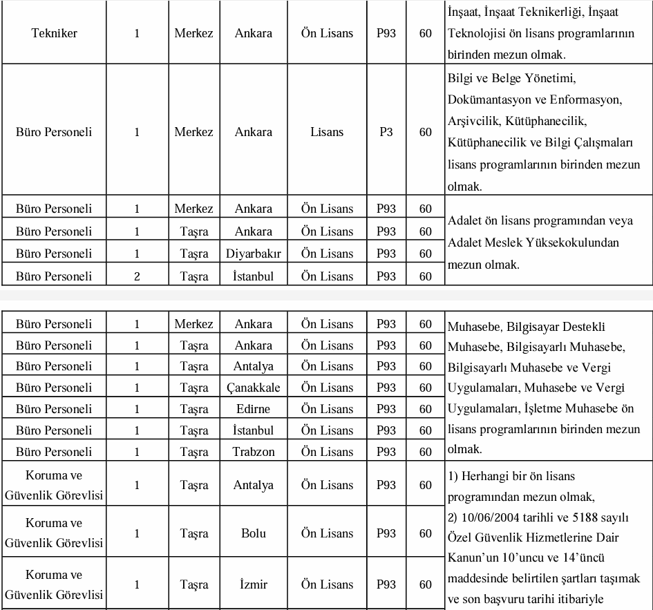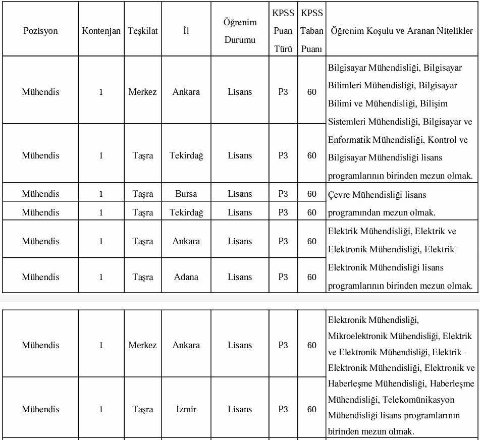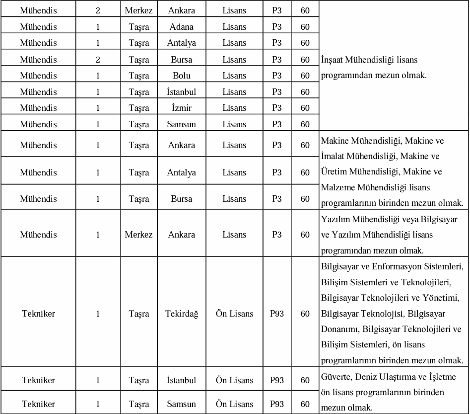 Az önce yayınlanan ilana baktığımızda alınacak adayların istihdam edileceği kadroların şu şekilde olduğu görüldü: