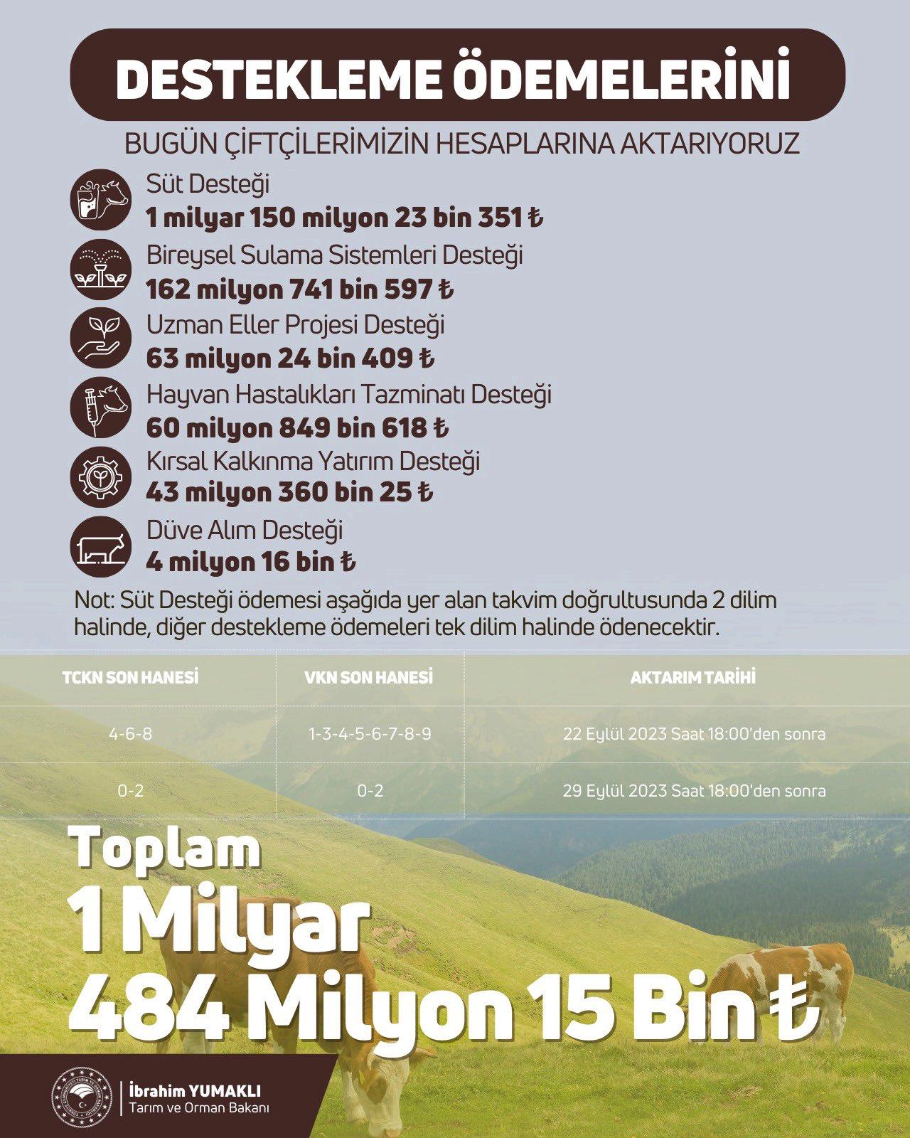 Tarım ve Orman Bakanı İbrahim Yumaklı sosyal medya hesabı üzerinden yaptığı açıklamada uzman eller projesi için ödemelerin başladığını söyleyerek, "1 milyar 484 milyon 15 bin TL tarımsal destekleme ödemesini çiftçilerimizin hesaplarına bugün aktarıyoruz" ifadelerini kullandı.