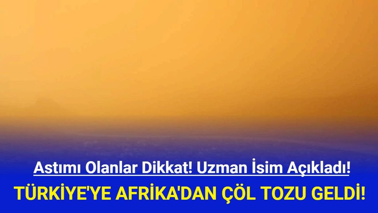 Çöl tozu, yurt genelinde hafta sonuna kadar etkisini gösterecek. Boğaziçi Üniversitesi Kandilli Rasathanesi ve Deprem Araştırma Enstitüsü Meteoroloji Laboratuvarı Başkanı Adil Tek, yaptığı açıklamada, Türkiye'nin batısından etkili olmaya başlayacak çöl tozunun perşembe günü tüm Türkiye'de etkisini göstereceğini belirtti. Tek, cumadan itibaren ise çöl tozunun etkisinin azalacağını ve hafta sonu ülkeden tamamen ayrılacağını ifade etti.