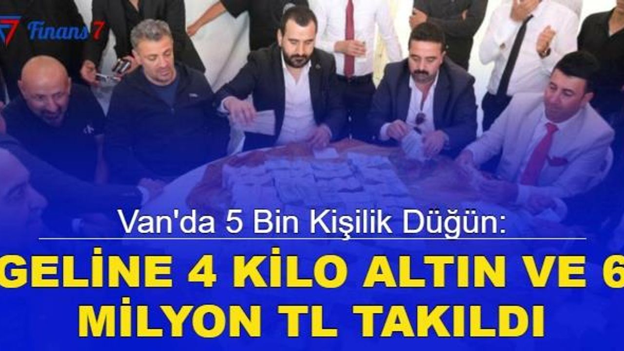 Van'da Ertoşi aşiretine mensup iş adamının oğlu için yapılan düğüne 5 bin kişi katılırken damada 6 milyon takılırken, geline ise 4 kilo altın takıldı.