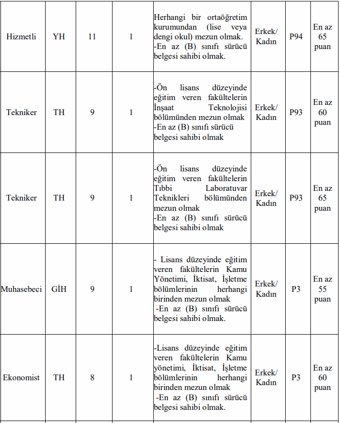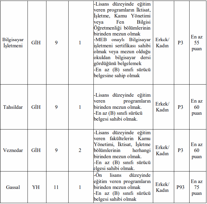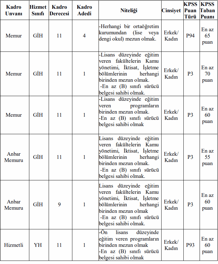 - İlan edilen unvanlar için mezun olunan okul itibari ile öğrenim şartını taşımak ve bu öğrenimle
