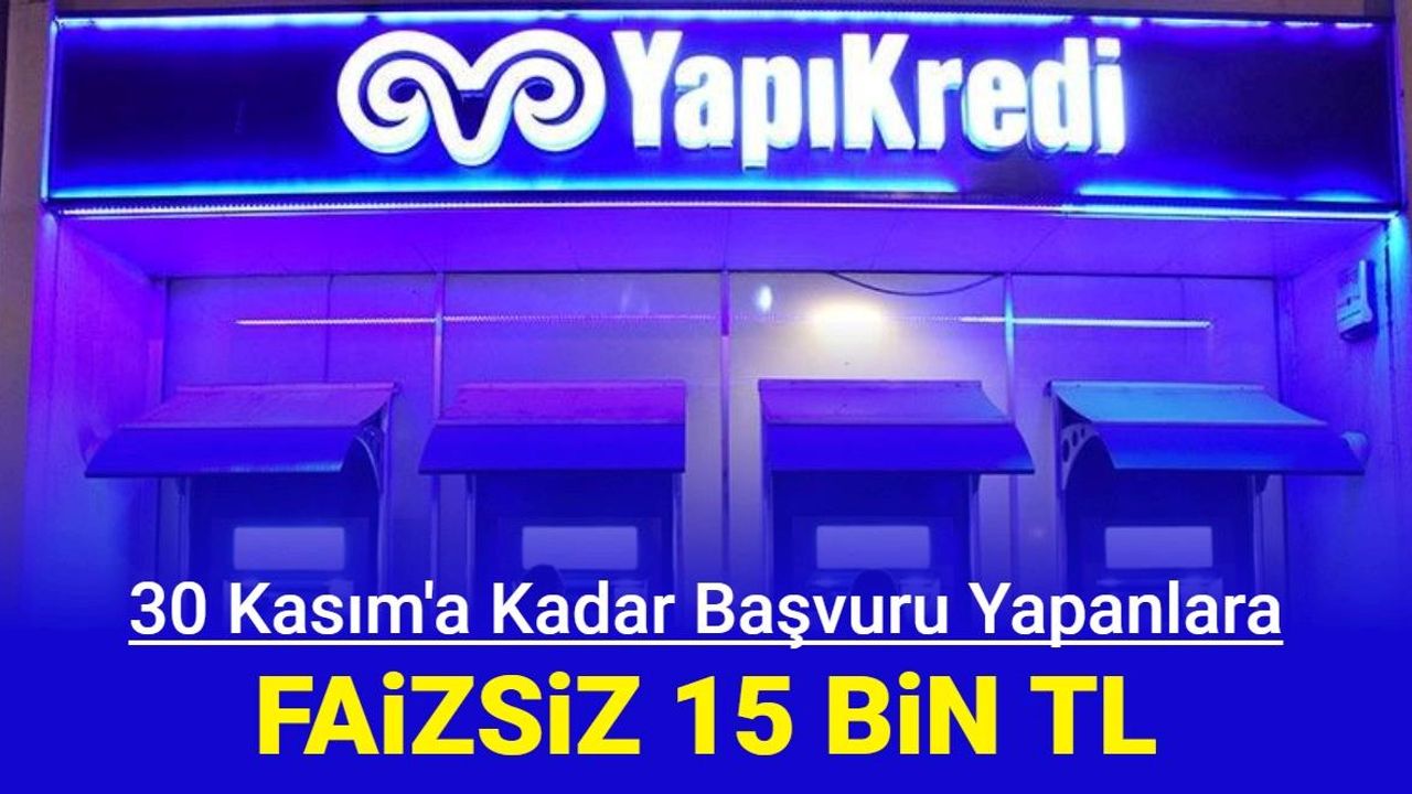 Yapı Kredi Bankası tarafından bir açıklama yapıldı. Yapılan açıklamada bankaya başvuru yapan vatandşalara faizsiz 15 bin liralık nakit avans verileceği, kampanyanın 30 Kasım 2023 tariihne kadar geçerli olacağına yer verildi. Bu tarihe kadar başvuru yapanlar kampanyadan faydalanabilecek.