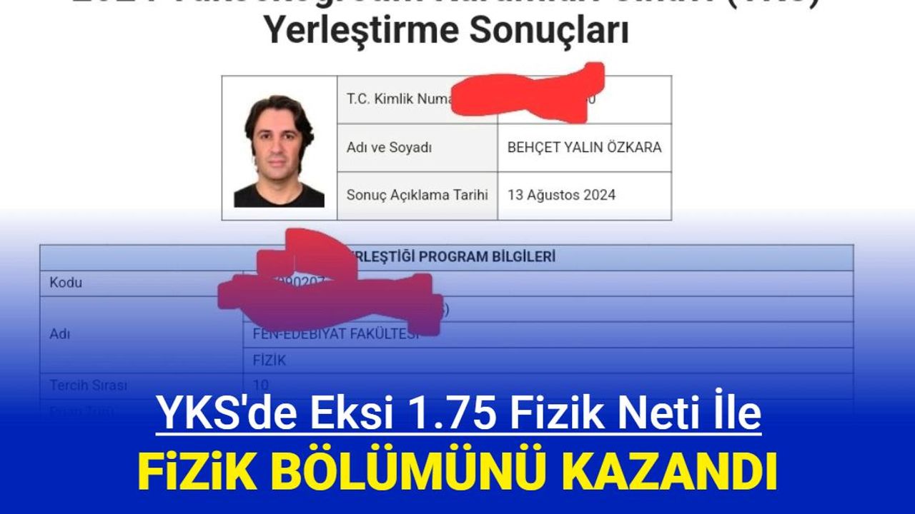 Tercihler başladı ve Özkara, tüm tercihlerine Fizik bölümünü yazdı ve açıklanan sonuç şu şekilde: