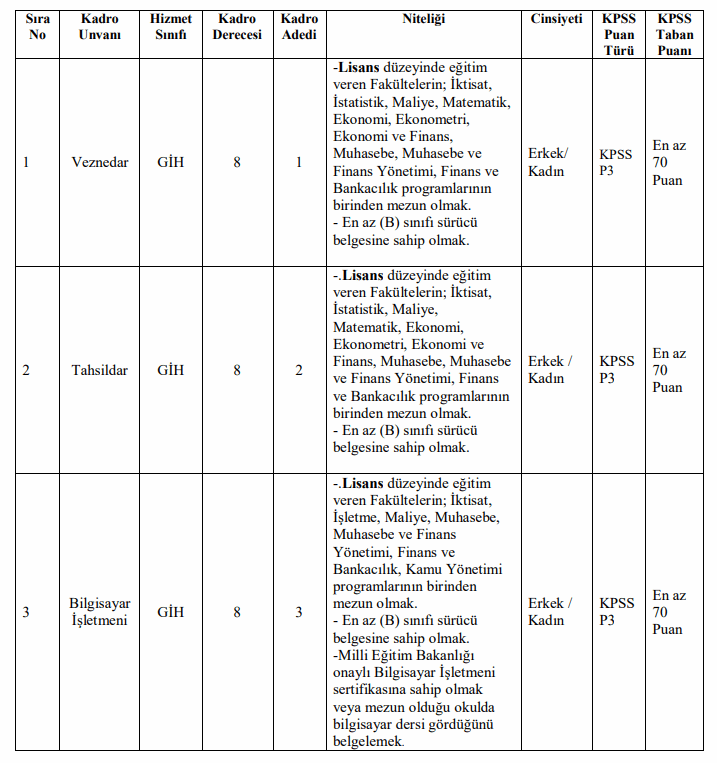İlanlara başvuru yapacak adaylarda aranan genel şartlar şu şekilde: