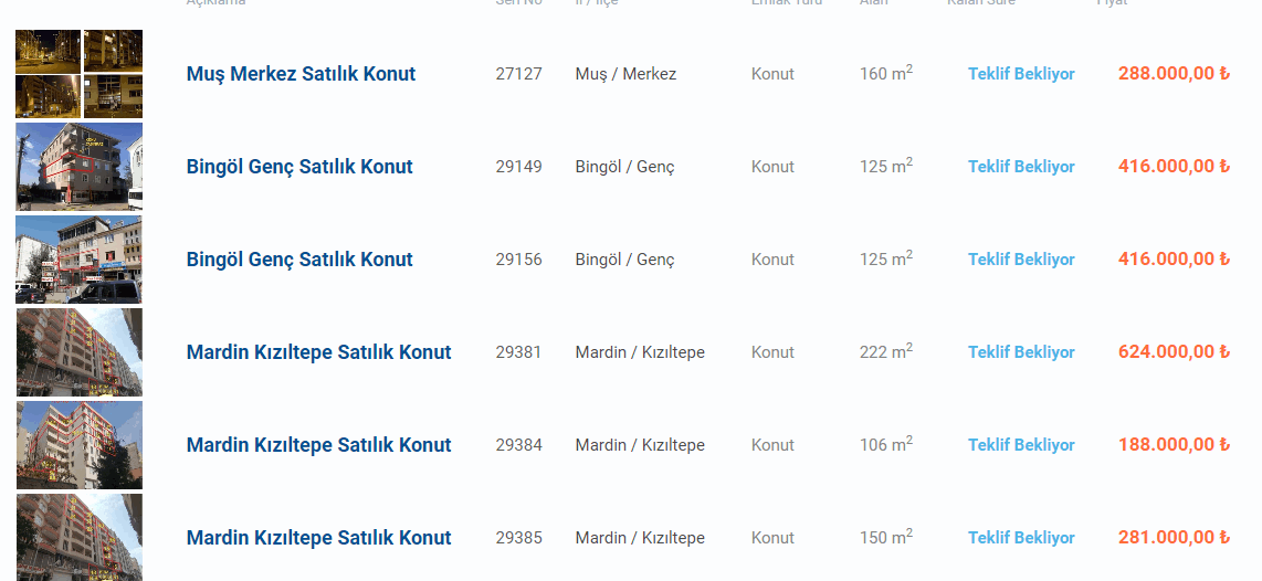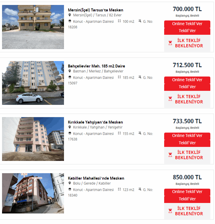 Halkbank tarafından yayınlanan açıklamaya baktığımızda birçok ilde apartman dairesi satışlarının başladığına yer verildi. 2. el konutlar için satış duyurularına baktığımızda evlerin fiyatlarının 177 bin liradan başladığına yer verildi. Söz konusu konutların bulunduğu iller ve evlerin detayları şu şekilde: